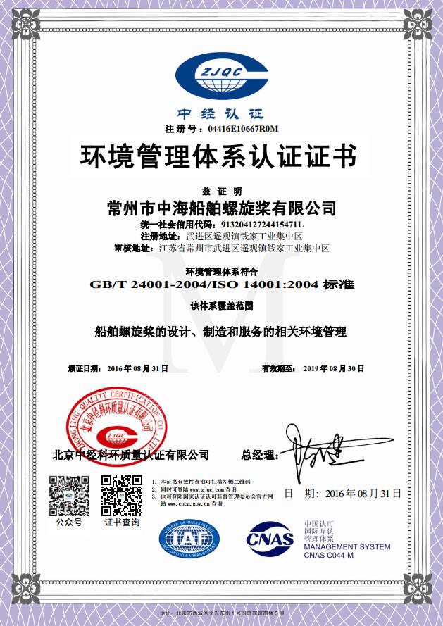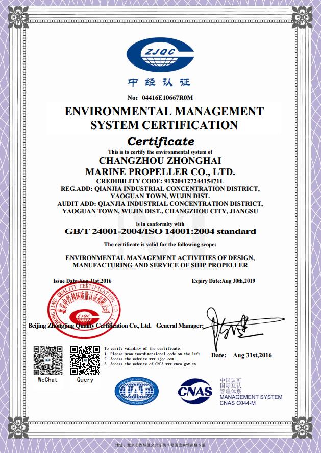 环境管理体系认证证书