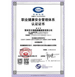 职业健康安全管理体系认证证书